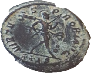 Roma,3,72 gr.2,2cm.Seaby,3278 İMP. BAŞINDA SORGUÇLU MİGFERİ SOLA ELİNDE MIZRAK TUTUYOR, ETRAFTA imp. CM. AVR Probus AVS M.S 276-282