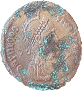 İmparator Arcadius elinde mızrak tutuyor, Sağa dönük, solunda Victor ayakta, yüz yüze dönük. Ellerinde defneden çelenk tacı İMP. Başına uzatıyor. Etrafı: VIRTUS EXERCITI.